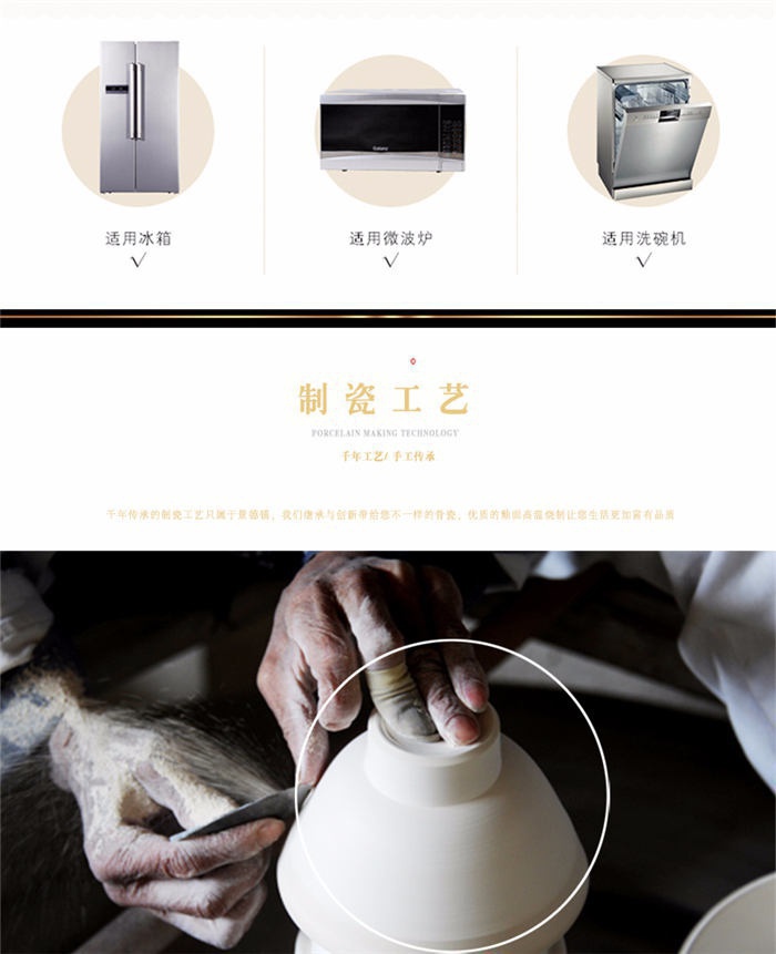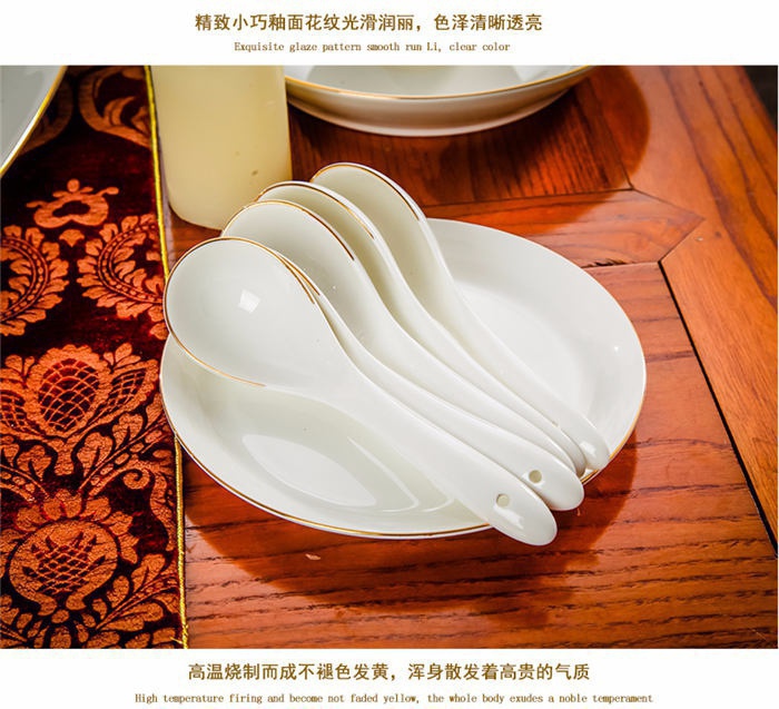 66頭純白描金,一個(gè)湯煲,一個(gè)魚盤,一個(gè)十寸圓盤,一個(gè)飯勺,一個(gè)煙灰缸,一個(gè)牙簽筒,七個(gè)面碗,十個(gè)4.5寸飯碗,十個(gè)八寸深盤,