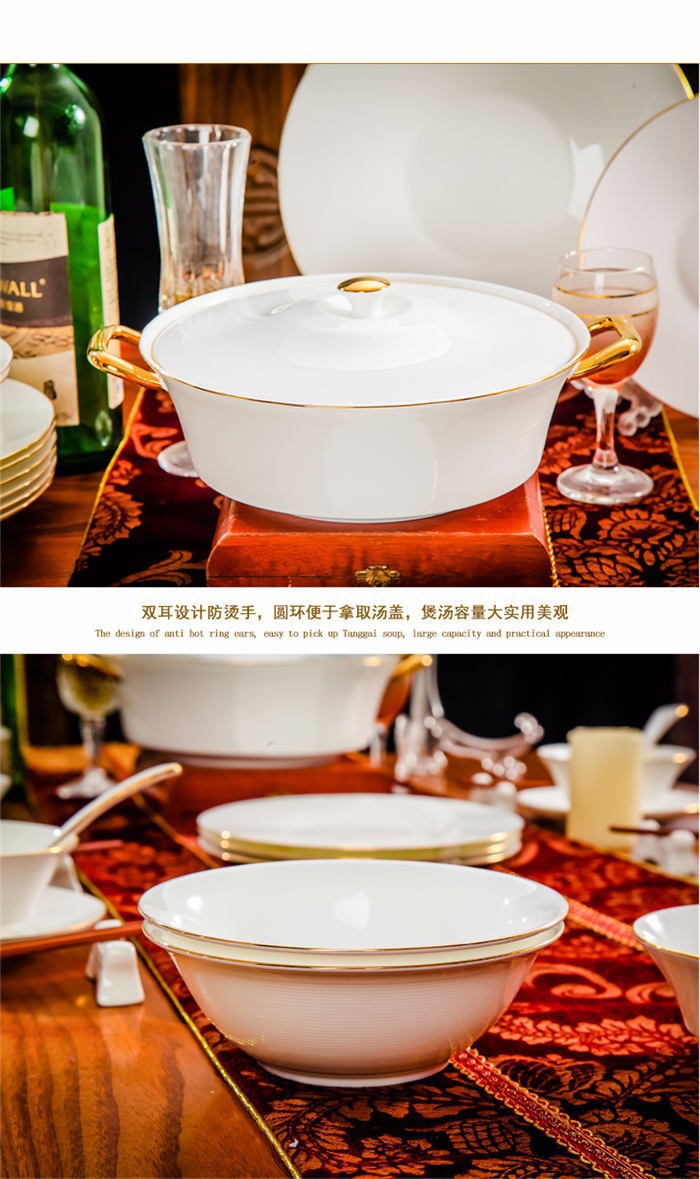 58頭頭金邊螺,一個(gè)湯煲,一個(gè)魚盤,一個(gè)十寸圓盤,一個(gè)飯勺,一個(gè)煙灰缸,一個(gè)牙簽筒,兩個(gè)面碗,十個(gè)4.5寸飯碗,十個(gè)五個(gè)五寸骨碟,十個(gè)八寸盤,十個(gè)調(diào)羹,十個(gè)筷子架。58頭頭金邊螺,一個(gè)湯煲,一個(gè)魚盤,一個(gè)十寸圓盤,一個(gè)飯勺,一個(gè)煙灰缸,一個(gè)牙簽筒,兩個(gè)面碗,十個(gè)4.5寸飯碗,十個(gè)五個(gè)五寸骨碟,十個(gè)八寸盤,十個(gè)調(diào)羹,十個(gè)筷子架。